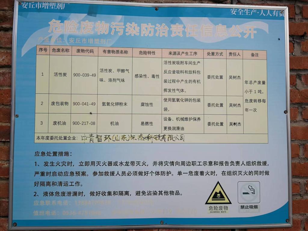安丘市增塑劑廠危險廢物污染防治責(zé)任信息公開