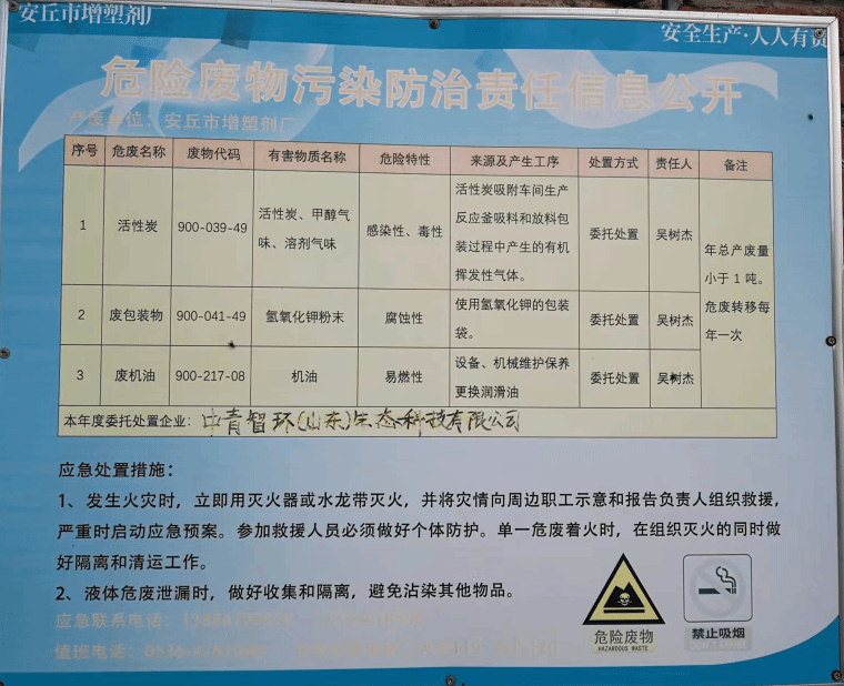 安丘市增塑劑廠危險(xiǎn)廢物污染防治責(zé)任信息公開(kāi)