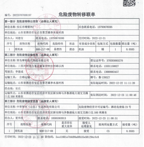 2022年度危險(xiǎn)廢物污染環(huán)境防治信息情況公示